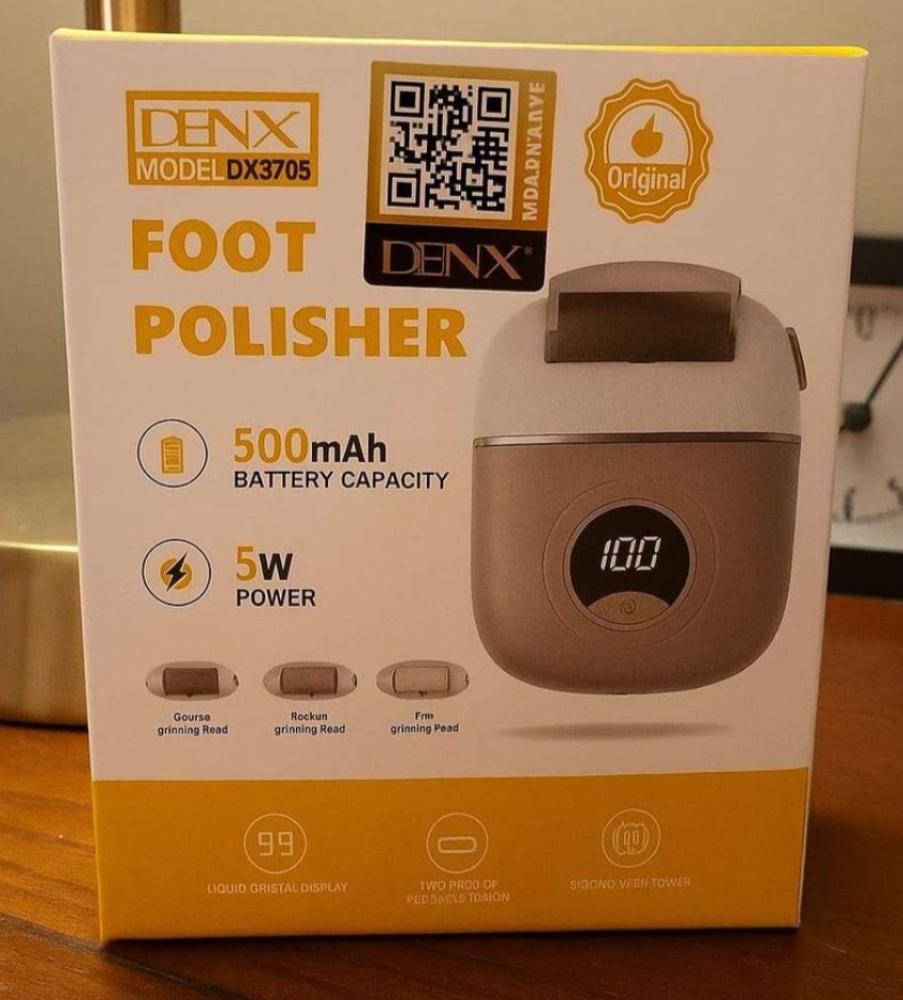 جهاز DENX لتنعيم القدمين (موديل DX3705) هو مزيل كهربائي لمسامير القدم قابل لإعادة الشحن، ومصمم لتنعيم الكعبين وإزالة الجلد الميت.